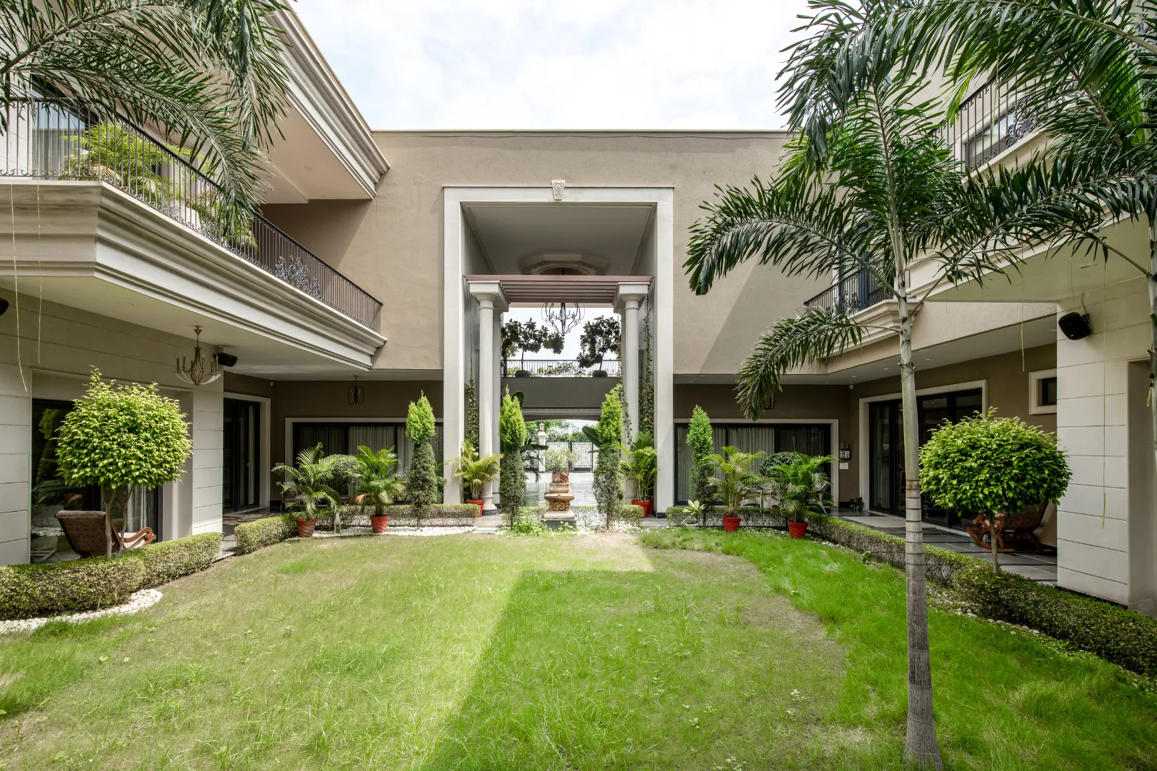A shared landscaped lawn forms the social heart, encouraging gatherings and everyday interaction. Separate entrances ensure privacy, while natural light, cross-ventilation, and Vastu-informed planning enhance comfort and balance. A pooja room anchors tradition, complemented by contemporary amenities such as a lounge and home theatre. The project reflects a thoughtful approach to context, climate, and enduring family bonds.